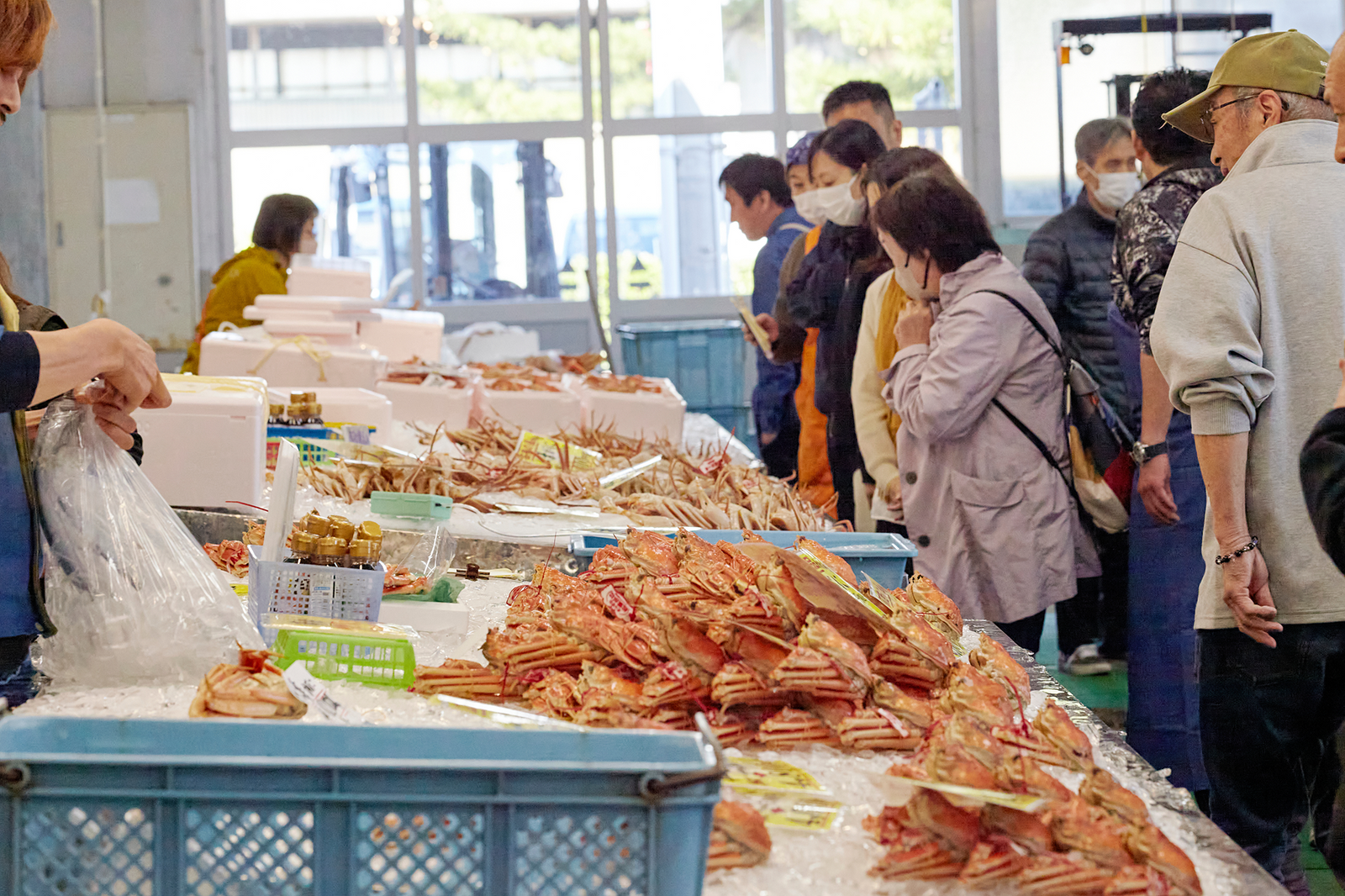 港から徒歩わずか50歩に位置するお店から、その日採れた新鮮な松葉ガニを即日お客様にお届けできるよう心掛けております。