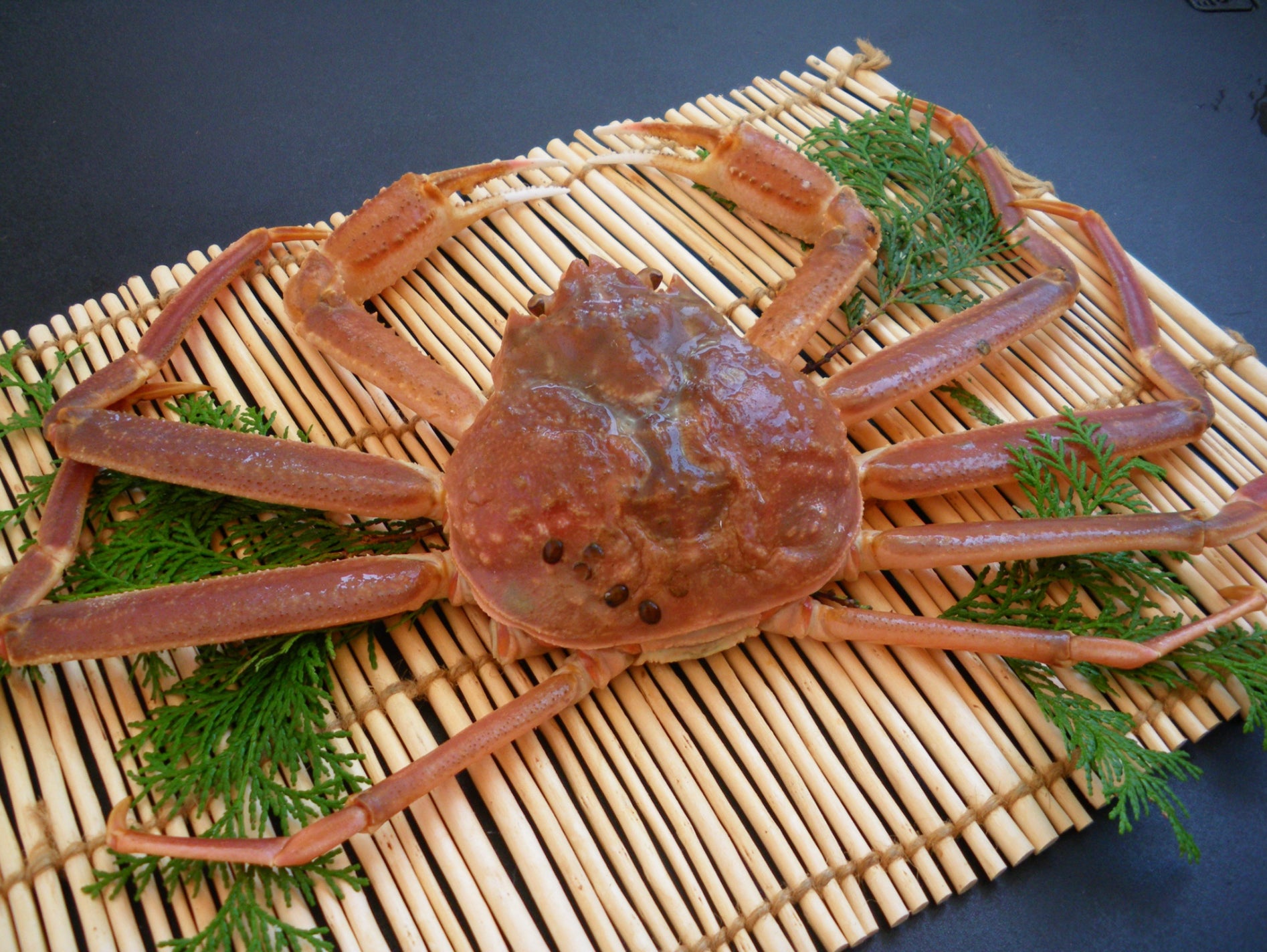 賀露港直送、特大800g超!95年老舗が届ける“生”松葉ガニ